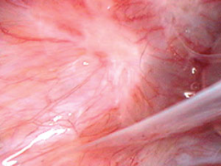 Younger women tend to have smaller lesions that are clear or white or red (as opposed to dark/brown lesion seen in older women –see below) on the surface of the pelvic cavity (peritoneum) (9). These lesions can only be detected when they are seen by a surgeon undertaking a diagnostic laparoscopy (keyhole surgery using a small telescope through the belly button). As these lesions can be subtle it is important to engage an experienced surgeon to make the diagnosis.