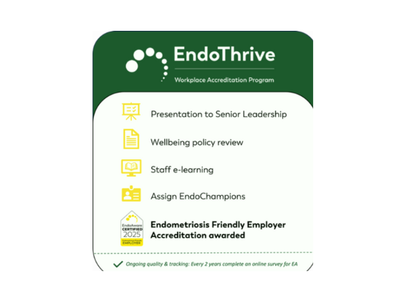 Recognition as an Endometriosis Friendly Employer, with an accreditation badge and ongoing support