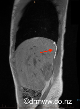 Image 5 & 6 Posterior diaphragmatic endometriosis seen on MRI as white spots